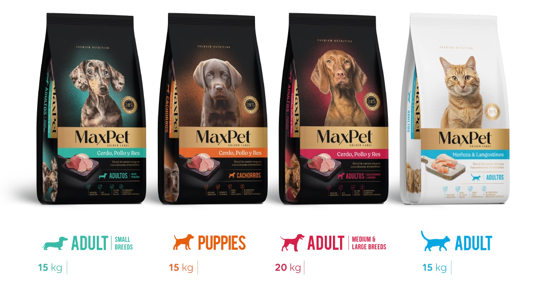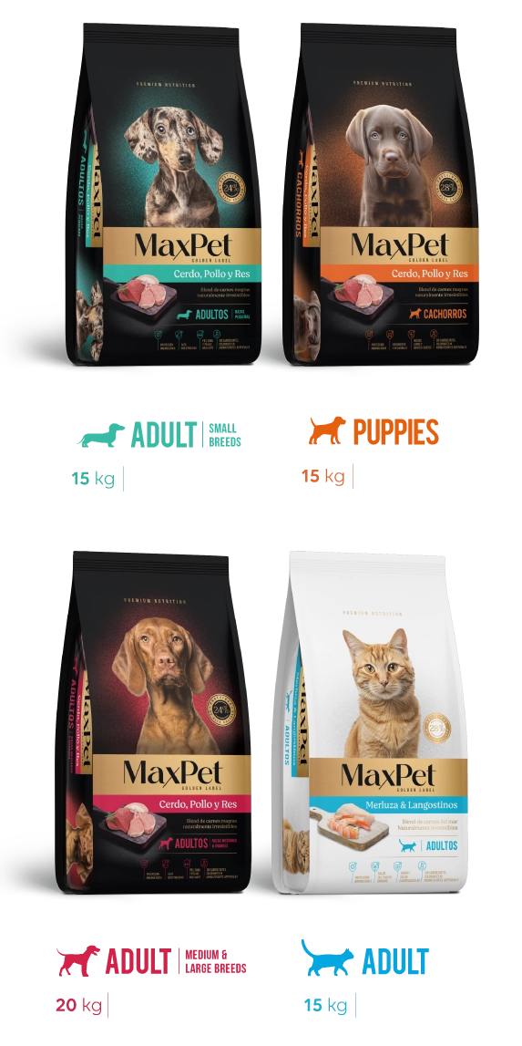 MaxPet Golden Label is an exclusive blend of lean meats, providing the essential vitamins and minerals dogs and cats need to strengthen their immune systems. Our high-quality, highly digestible proteins help them stay healthy and strong.